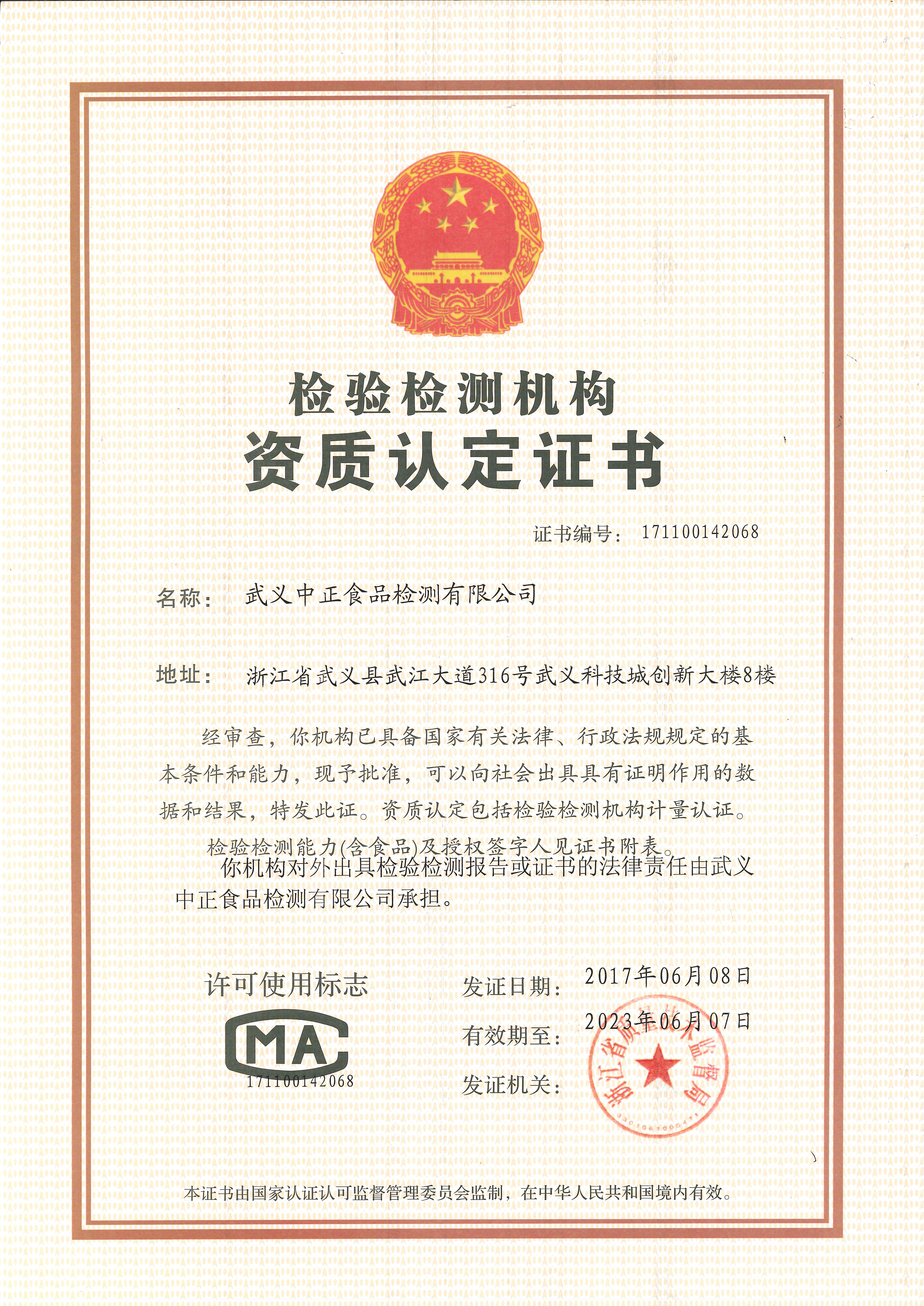 依托单位:武义中正食品检测有限公司    行业分类:检测